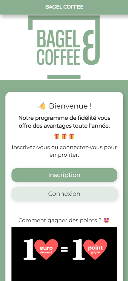 Sur tous les bagels et boissons. Atteignez 100 points et recevez 5€ de réduction immédiate.